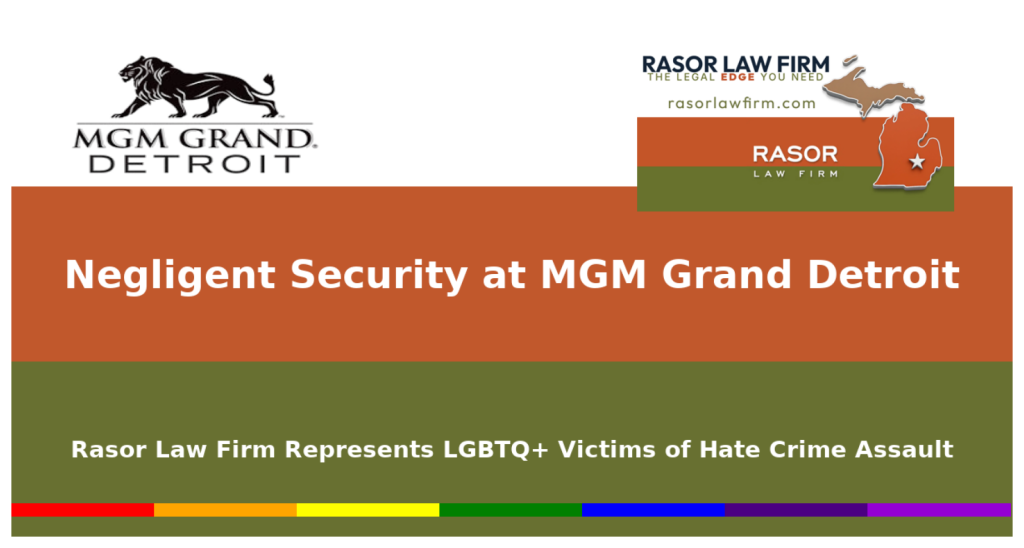 Royal Oak, MI – Rasor Law Firm represents multiple victims of a violent hate crime that occurred outside the MGM Grand Detroit hotel and casino on July 13, 2025. The firm is preparing potential civil claims against MGM Grand Detroit and other parties in connection with the brutal assault of two same-sex couples that left one victim hospitalized with severe injuries.